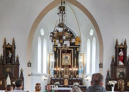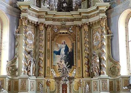 Первым остановочным пунктом на пути знакомства с Полесским краем стал городской поселок Логишин. Местечко впервые упоминается в 1552 г. в «Писцовой книге Пинского княжества». Сотрудники Института познакомились с историей и осмотрели белокаменную Спасо-Преображенскую церковь и католический храм Святых Петра и Павла, с 1997 г. обладающий статусом Санктуария Королевы Полесья (в алтаре костела находится старинный чудотворный образ Матери Божьей Логишинской Королевы Полесья).
