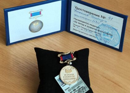 Коллектив Института философии НАН Беларуси удостоен медали Института философии Российской академии наук «За вклад в развитие философии». Высокая награда подчеркивает вклад белорусской академической школы философии в развитие философского и научного знания в стране, регионе и мире. Медаль была вручена директором Института философии РАН Абдусаламом Гусейновым директору Института философии НАН Беларуси Анатолию Лазаревичу 19 марта 2026 г.